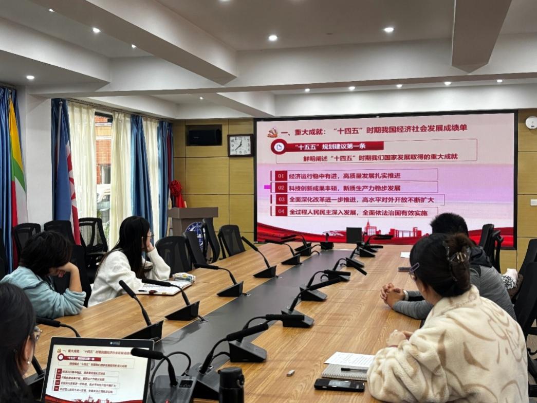 接着,党支部书记廖丹老师带领大家一起回顾了“十四五”时期我国经济社会发展的重大成就。这些重大成就的取得,不仅为“十五五”时期发展奠定了坚实基础,更印证了中国式现代化道路的正确性。