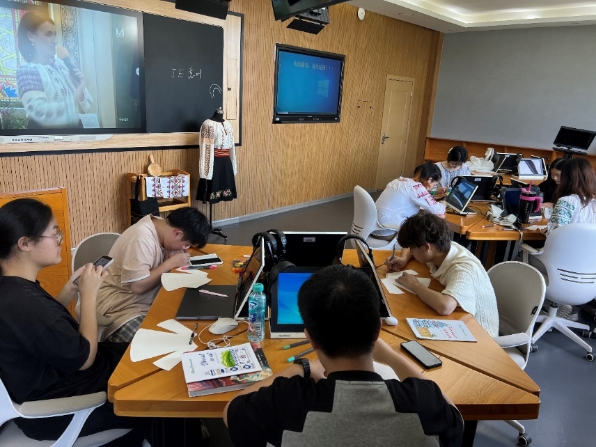 2025年7月3日上午10时,罗马尼亚语系学生在外教Traian的带领下,于培英楼823教室开展“罗马尼亚文化体验会”活动,围绕罗马尼亚传统服饰“意叶”(ie)展开了一场别开生面的实践活动。