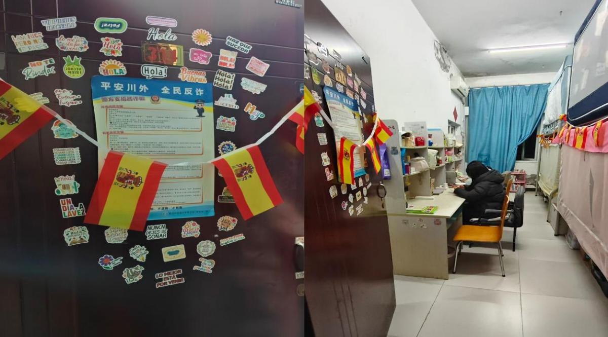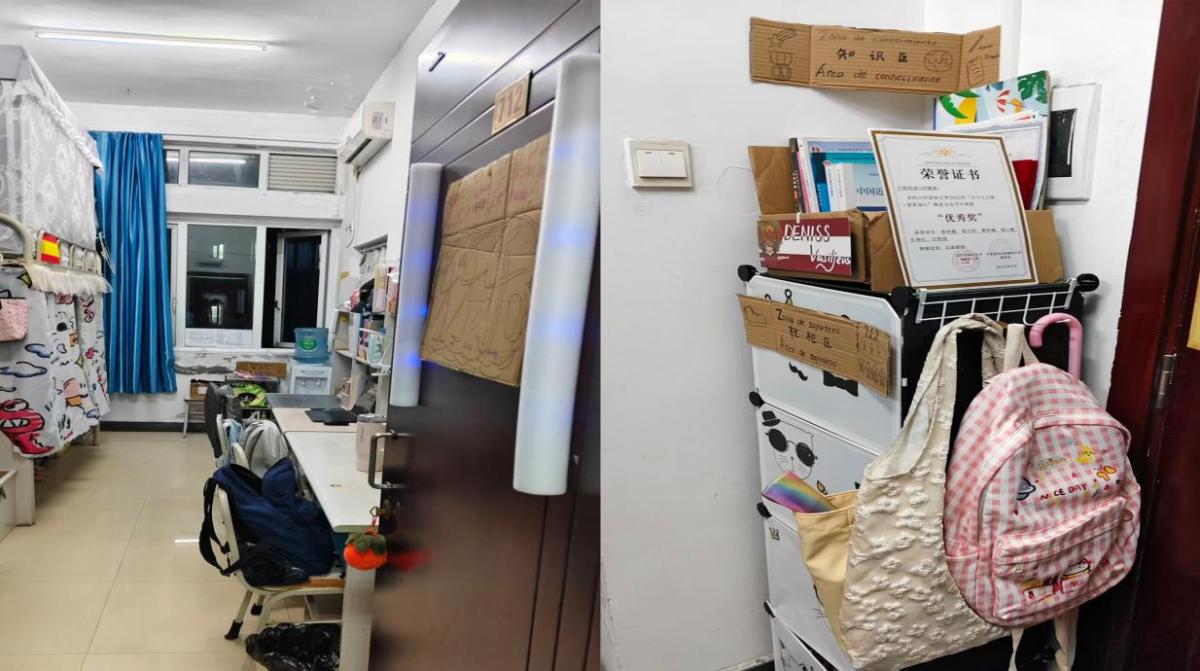 评选过程中,各学生寝室各具特色、个性鲜明:有的寝室窗明几净、内务整齐,尽显严谨生活态度;有的寝室以多语言励志标语、文化海报装饰墙面,凸显专业特色;有的寝室布置图书角,陈列专业语言原版名著;还有的寝室使用双语介绍自身寝室文化布置。