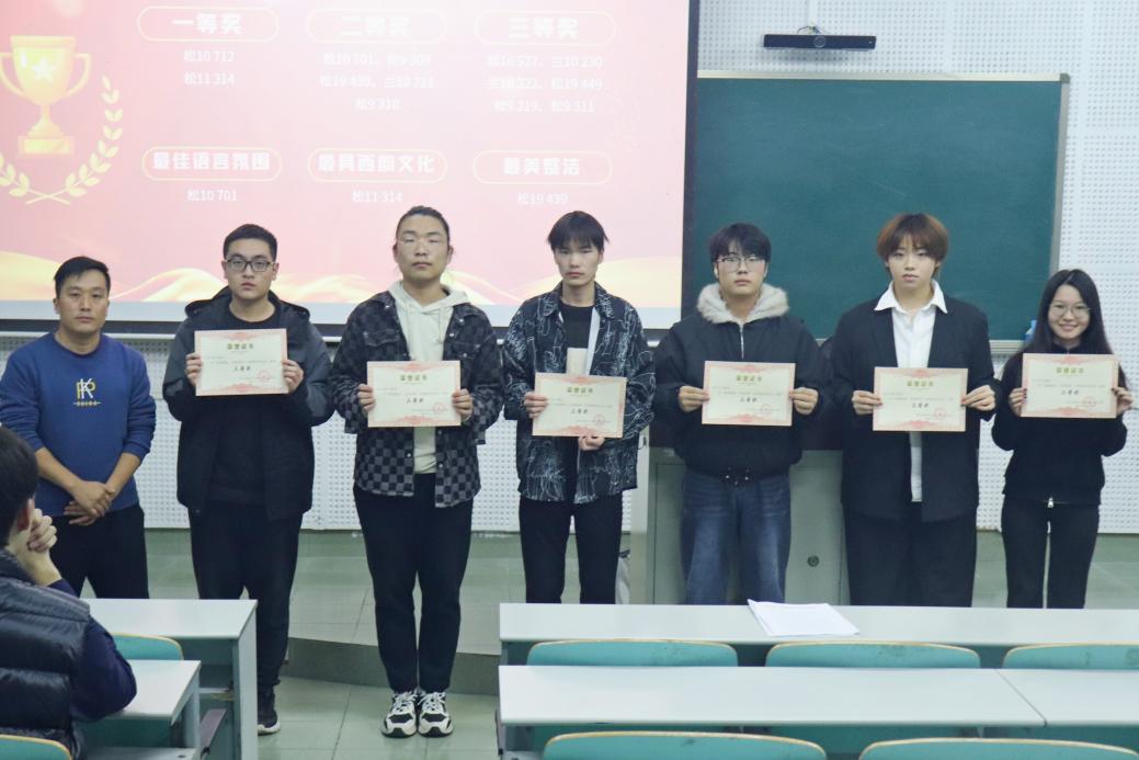 11月28日下午,学院在东区宏文楼1-1教室举行了文明寝室评选活动表彰大会,党总支书记苏雪、团总支书记李刚、师生代表及获奖寝室成员参加了大会。党总支书记苏雪和团总支书记李刚分别为获奖寝室进行颁奖。