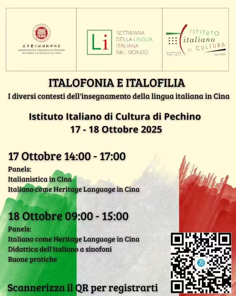 2025年10月17日至18日,由在华意大利语教师协会与意大利驻华使馆文化处联合主办的“意大利语世界与意大利情结:中国意大利语教学的不同环境”学术研讨会在北京成功举行。本次研讨会作为第二十五届世界意大利语言周的核心学术活动,汇聚了来自北京大学、北京外国语大学、南开大学、意大利威尼斯大学、英国剑桥大学等十余所海内外知名院校的四十余位专家学者,共同探讨意大利语教学在中国多元化语境下的创新路径与发展前景。