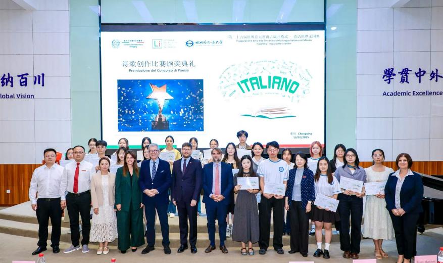 开幕式期间还举行了意大利语诗歌创作比赛颁奖仪式。来自我校及重庆外语外事学院的学生积极参与,作品紧扣主题,展现出扎实的语言功底与创新意识,体现了青年一代对意大利文化的深入理解与创造性转化。