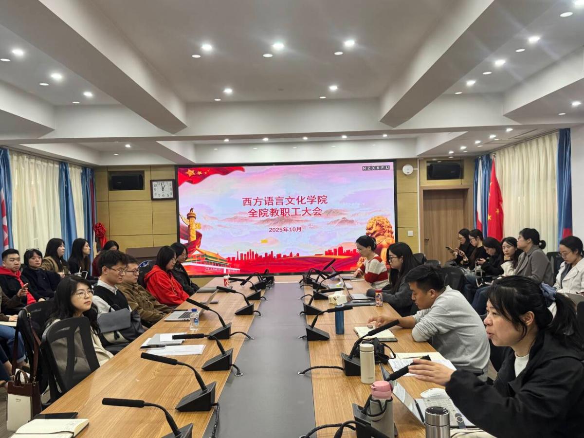 2025年10月31日中午,西方语言文化学院在文轩楼103会议室召开了全体教职工大会。